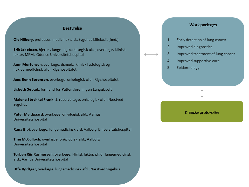 - At skabe en effektiv ramme for optimal indførelse af evidensbaseret behandling af lungekræft i Danmark